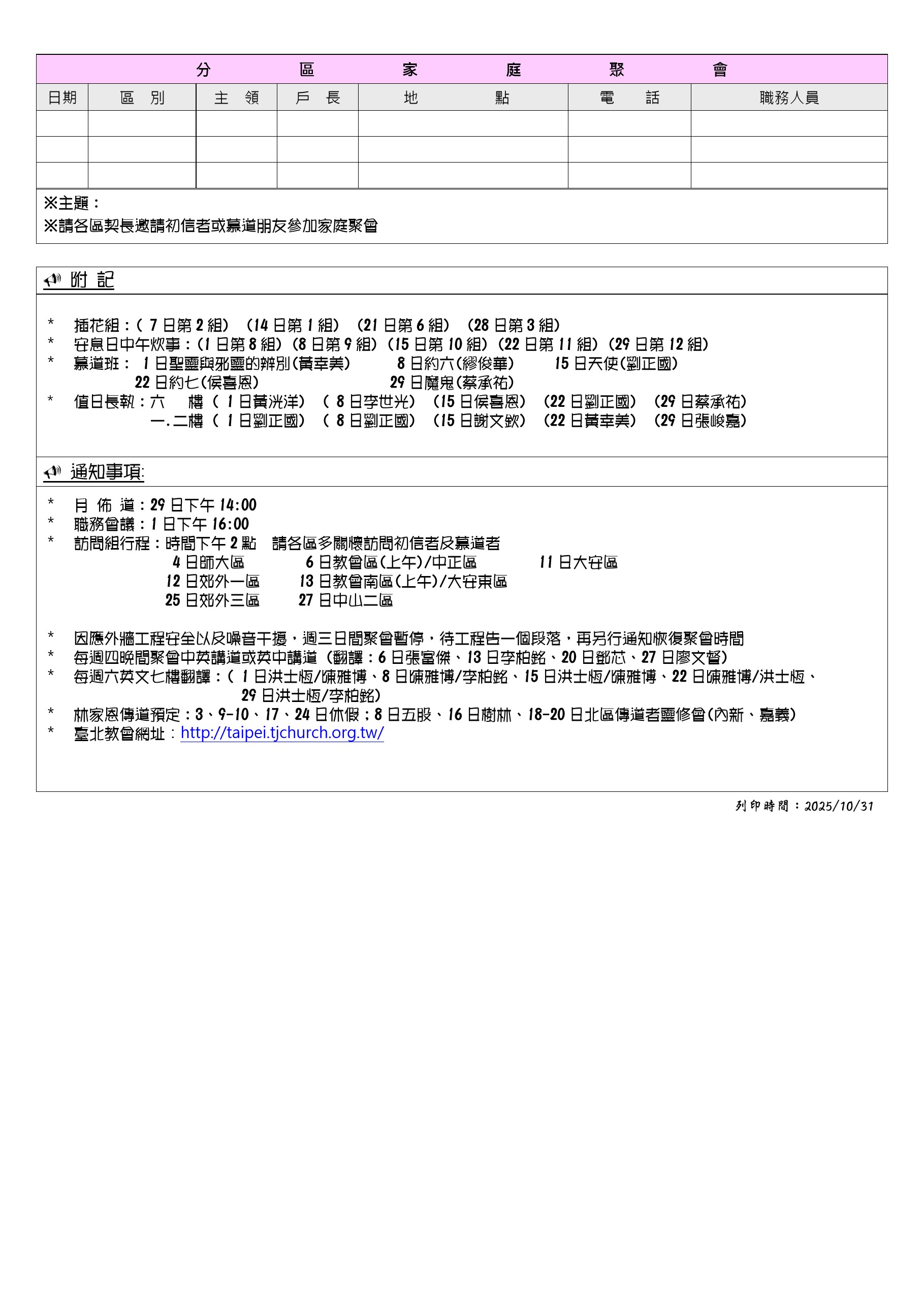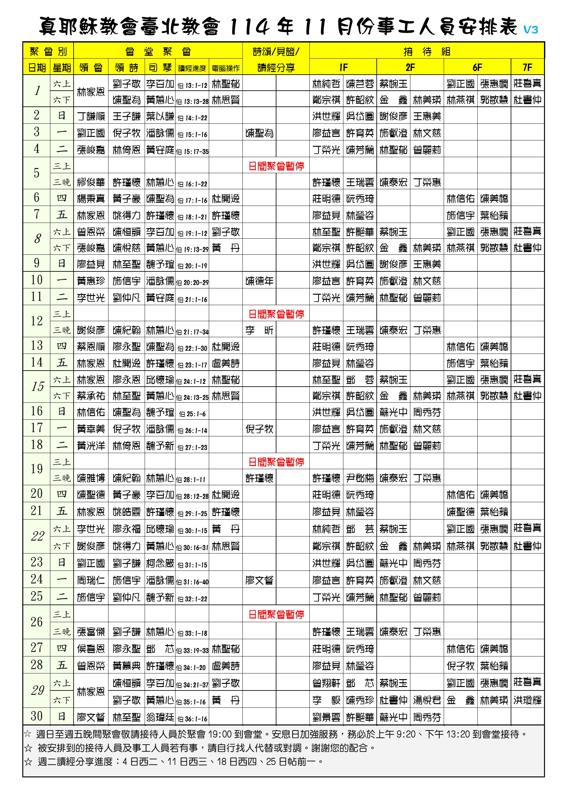 [安排表] 114年11月 Posted on 2025-10-232025-10-31 本次更新時間10/31 17:00 Share this:FacebookGoogleSkype Related Posts [安排表] 114年春季靈恩會11404春季靈恩佈道會安排表 [安排表] 114秋季靈恩會11410秋季靈恩佈道會安排表 [安排表] 111年春季靈恩會下載安排表