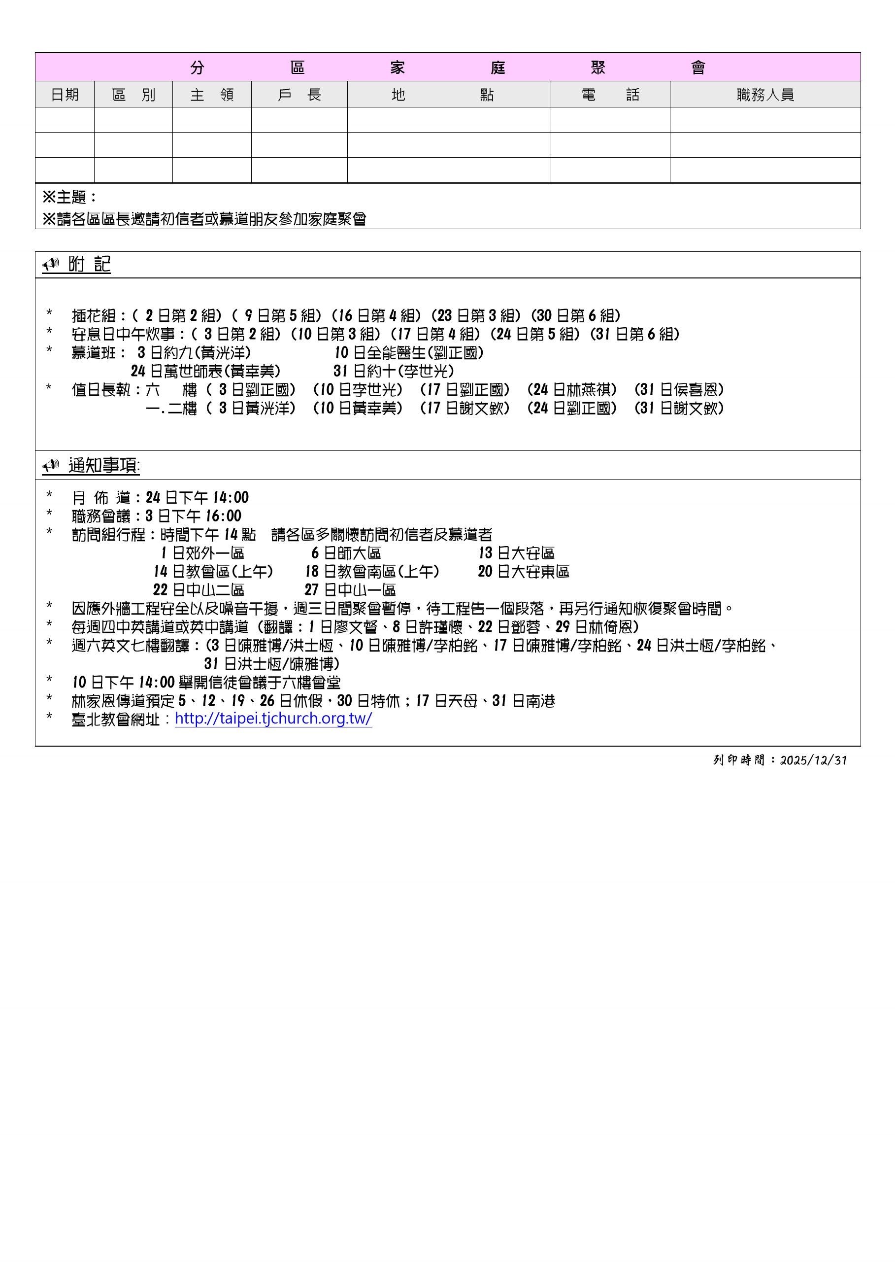 [安排表] 115年1月 Posted on 2025-12-262025-12-31 本次更新時間12/31 17:30 Share this:FacebookGoogleSkype Related Posts [安排表] 114年春季靈恩會11404春季靈恩佈道會安排表 [安排表] 114秋季靈恩會11410秋季靈恩佈道會安排表 [安排表] 111年春季靈恩會下載安排表